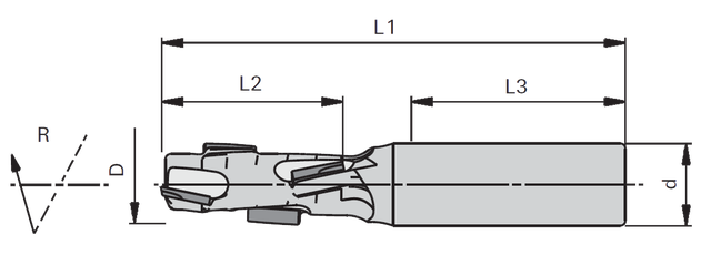 - з різцем для засвердлювання з твердого сплаву HM для подачі в двох площинах
